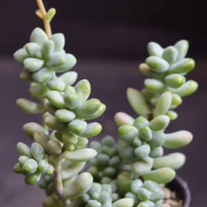 Burros Tail (Bare Rooted )Burros Tail is a trailing succulent with long, trailing stems covered in plump, blue-green leaves. It’s perfect for hanging baskets or as a ground cover.