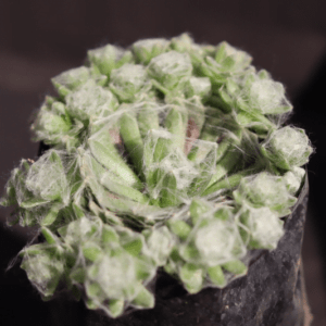 Cobweb (Bare Rooted)Cobweb is a unique succulent with fuzzy white hairs that cover its green leaves, giving it a cobweb-like appearance. It’s drought-tolerant and produces small white flowers in the summer.
