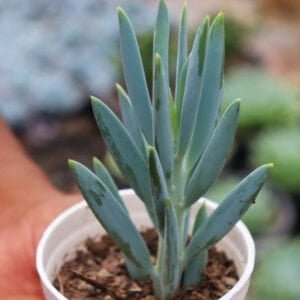 LONG BLUE CHALKSTICKS (BARE ROOTED)Long Blue Chalksticks is a low-growing succulent with cylindrical leaves that turn blue-green in bright sunlight. It’s perfect for rock gardens or as ground cover.